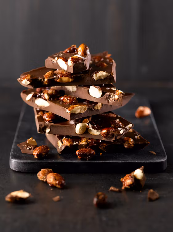 Mørk sjokolade med karamelliserte mandler & havsalt